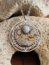 Confectionné à partir d'un mécanisme de montre ancienne et de divers éléments d'horlogerie.