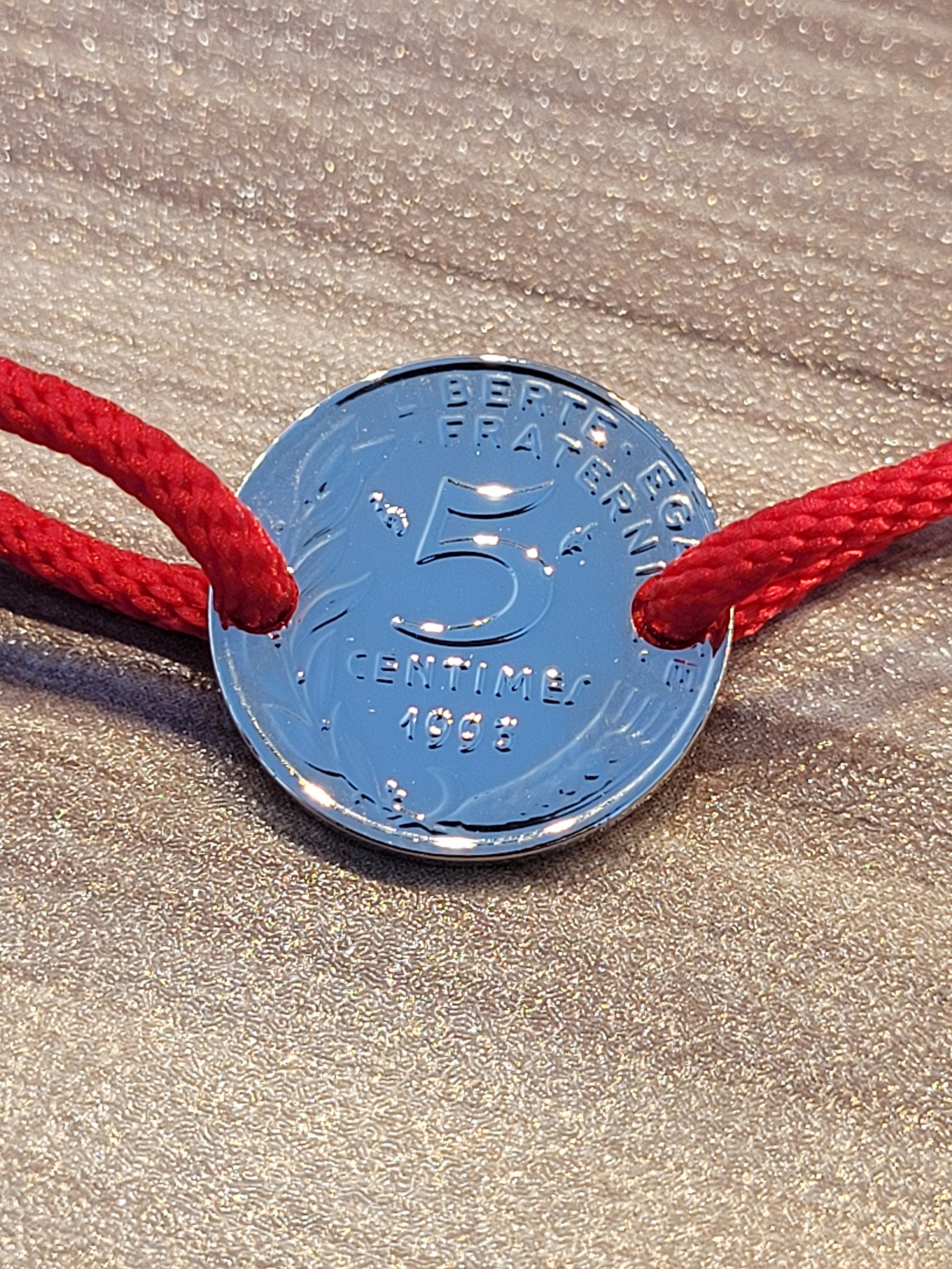 Commande sur mesure : Bracelet ajustable 5 centimes plaqué or 1993